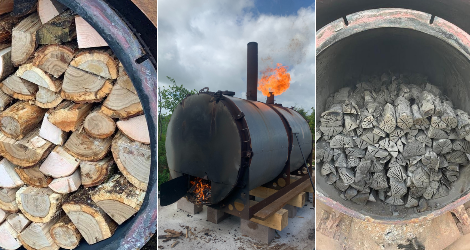 We have invested in an "Exeter Charcoal Retort" to replace our old ring kiln that we used in the past. The retort is the cleanest way to burn wood and produces high quality lumpwood charcoal very efficiently.